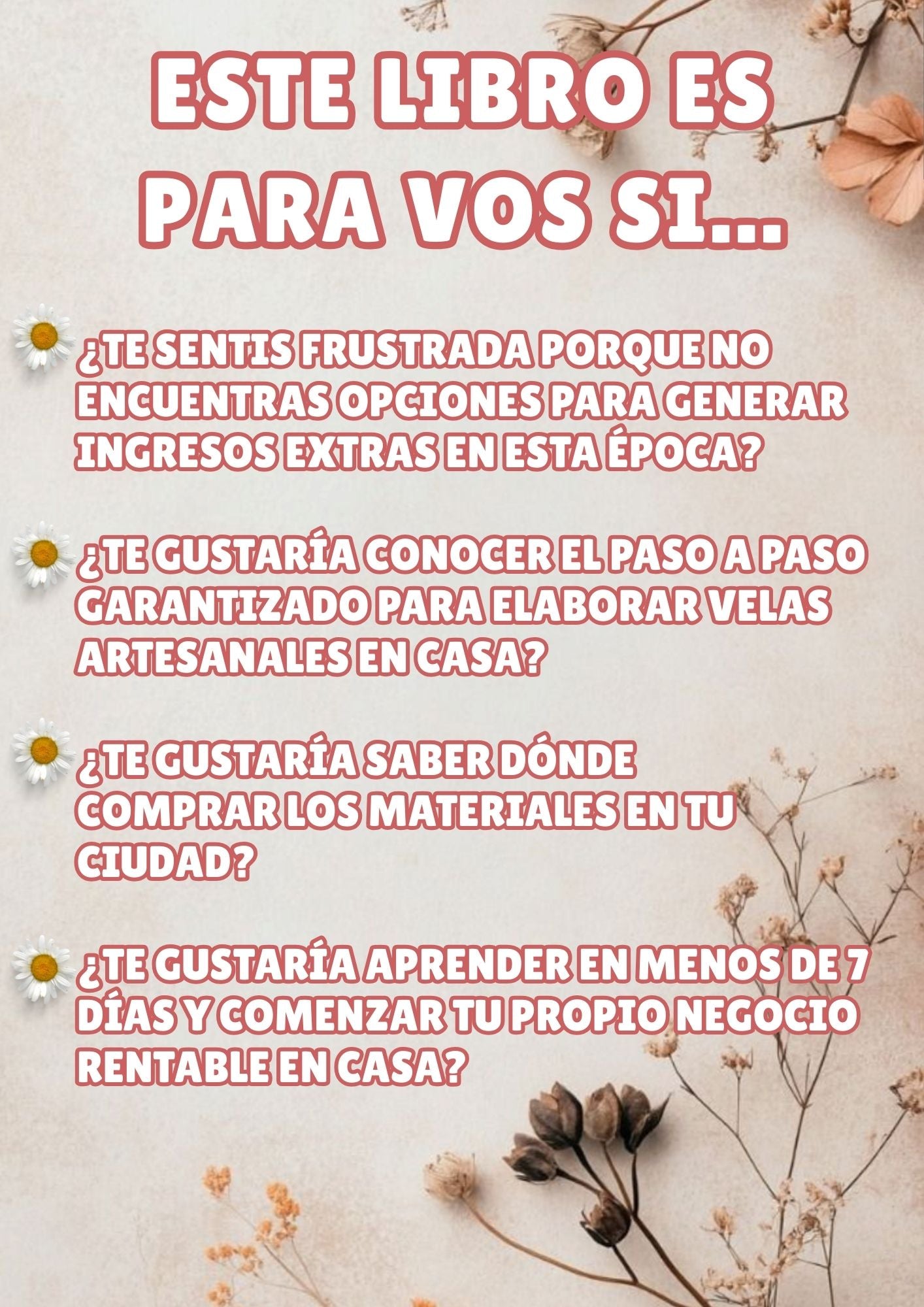 🕯️ ¡Mejor aún! El libro está pensado para principiantes, con pasos claros, materiales fáciles de conseguir y técnicas que cualquiera puede aplicar desde el primer día.